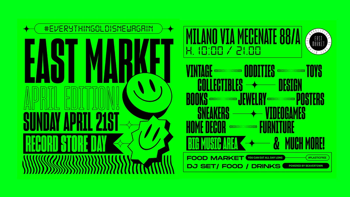 East Market, in Milan since 2014, is the first market dedicated to hobbyists and traders who can sell, buy and exchange vintage, antiques, used items, sneakers, vinyl, curiosities and old collections.